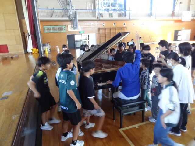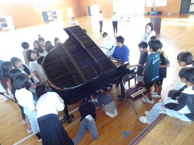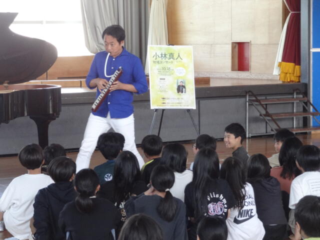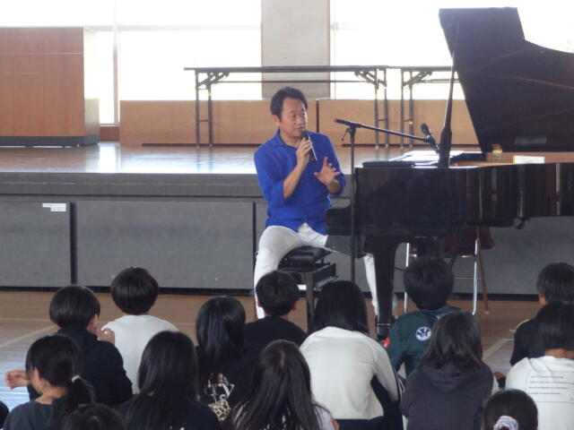 1・2年生が校庭にある柿の収穫をしました。焼酎につけて渋抜きをして、おいしくいただく予定です。また、ピアニストの小林真人さんをお招きして、5年生を対象としたスクールコンサートを行いました。音楽の楽しさを存分に味わわせてくれるとても美しく楽しいコンサートでした。明日14:00から、ひらたタウンセンターで小林さんのコンサートが開催されます。ぜひ、行ってみてください。