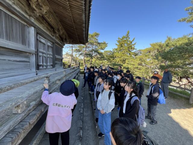 6年生が修学旅行に出発しました。1日目は震災遺構大川小学校、五大堂、瑞巌寺を見学し、遊覧船に乗りました。その後、南小恒例の「平田の魅力」パンフレット配りをしました。買い物もしました。天気も最高!みんな元気!楽しい旅をしています。17時に宿に到着です。