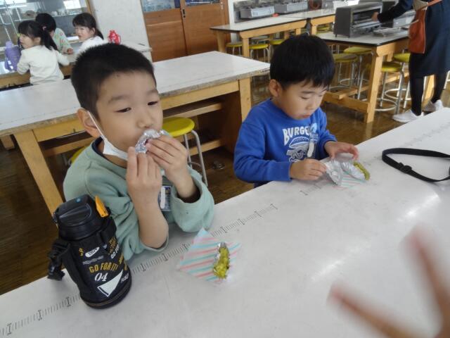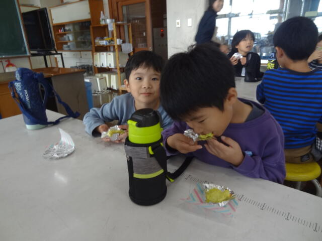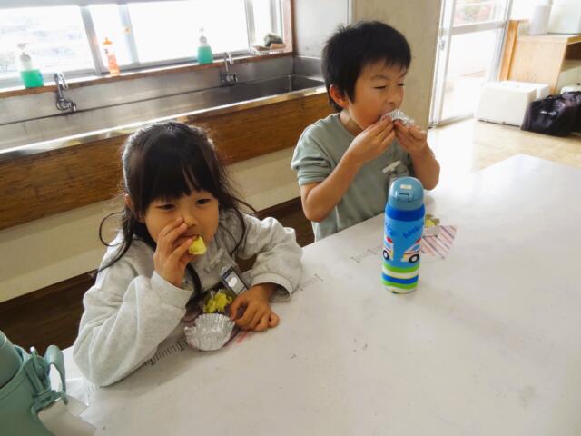 1年生がスイートポテトを作っていました。食欲の秋を満喫しました。