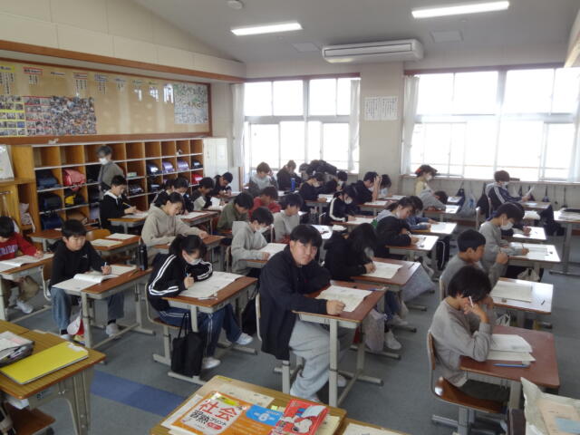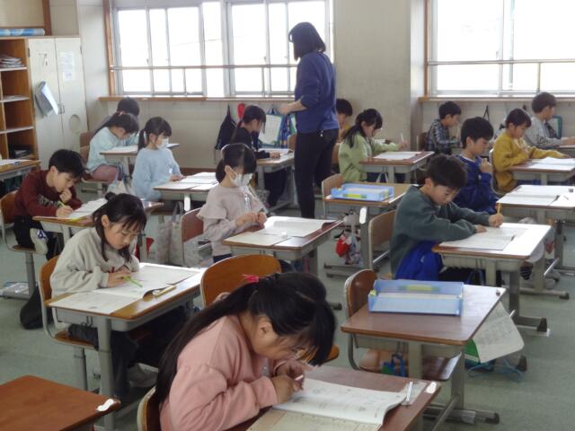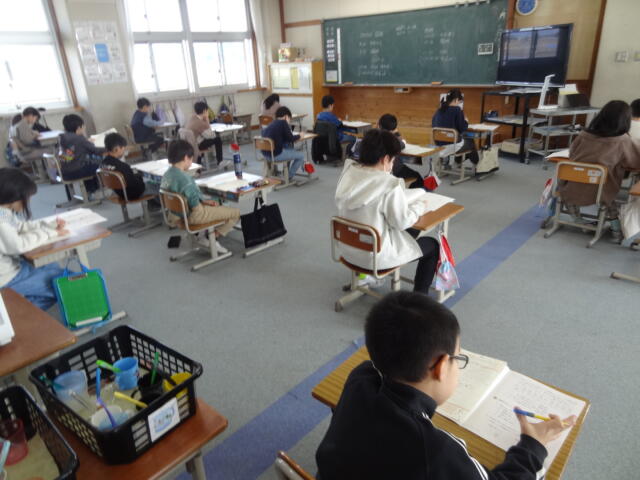 全学年がCRTに臨みました。CRTは、これまでの学習をどの程度理解したかを確かめるテストです。1日目は、1,2年生が国語を、3,4,5,6年生が国語と理科の2教科をがんばりました。