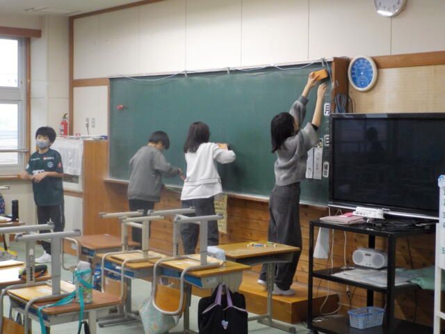週明けの月曜日、体調を崩してお休みする人が急に増えました。具合の悪いときは無理をせず、早めに医療機関を受診していただくようにお願いします。今日の清掃は、学級清掃に切り替えて行いました。