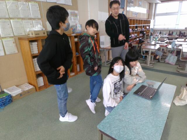 今年度最後のオンライン交流をしました。最終回はこれまでの交流会で学んだ、お互いの市や学校のことをクイズにしながら振り返りました。3回の交流でしたが、子供同士すぐに打ち解け、楽しく活動することができました。いつの日か会うことができたら最高ですね。