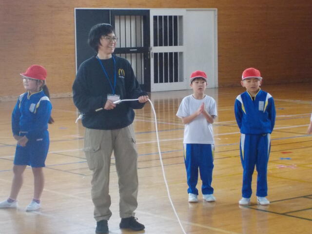 休み時間は、子供たちと縄跳び