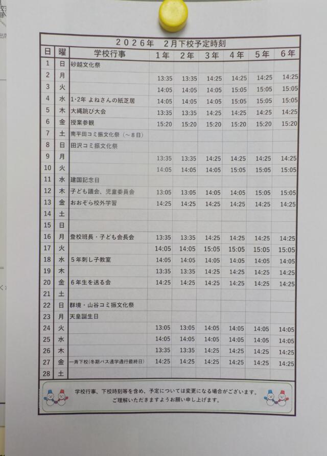 毎月の下校予定時刻の作成