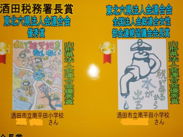 ①税の絵はがきコンクールで、6年生4名のお友達の作品が入賞しました。