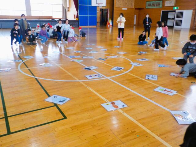2年生が作ったことわざかるたを使って、1,2年生でことわざかるたとり大会をしました。とてもかわいらいことわざかるたですが、かるたとりとなると大盛り上がりとなりました。