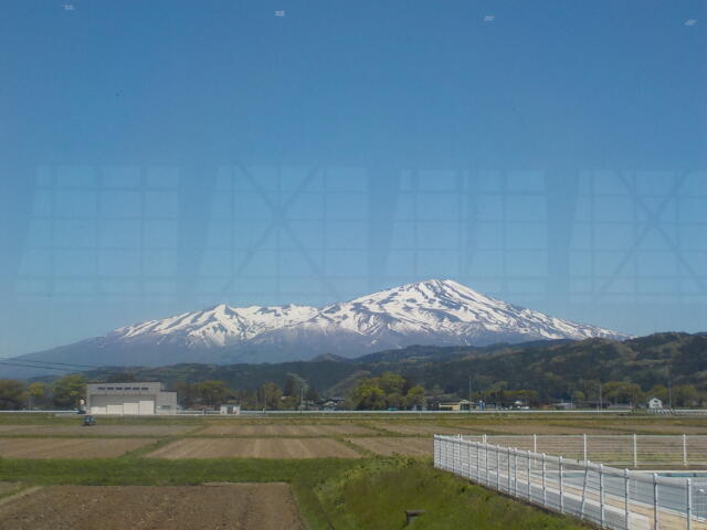 晴天で体育館ステージからのぞむ壮大な鳥海山!