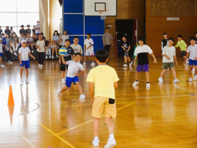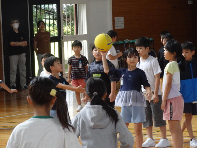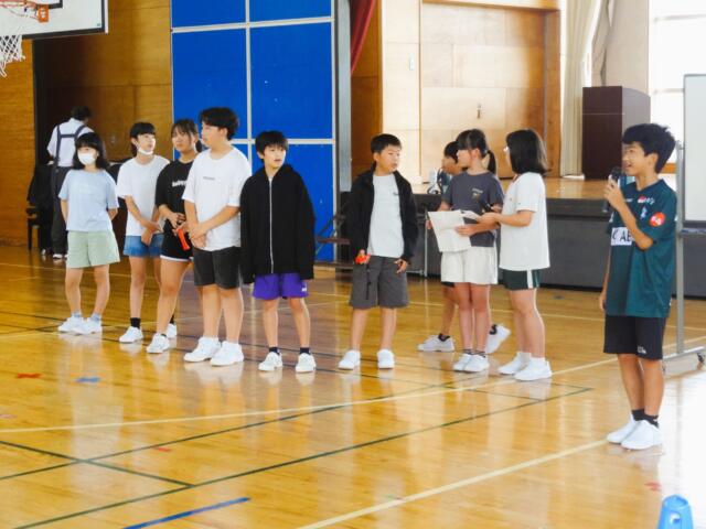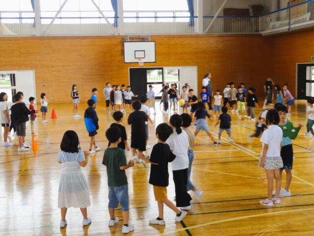 運動委員会の企画です。上・下学年それぞれ赤・青・黄組に分かれて対戦しました。エネルギッシュに躍動する子供たちでした。